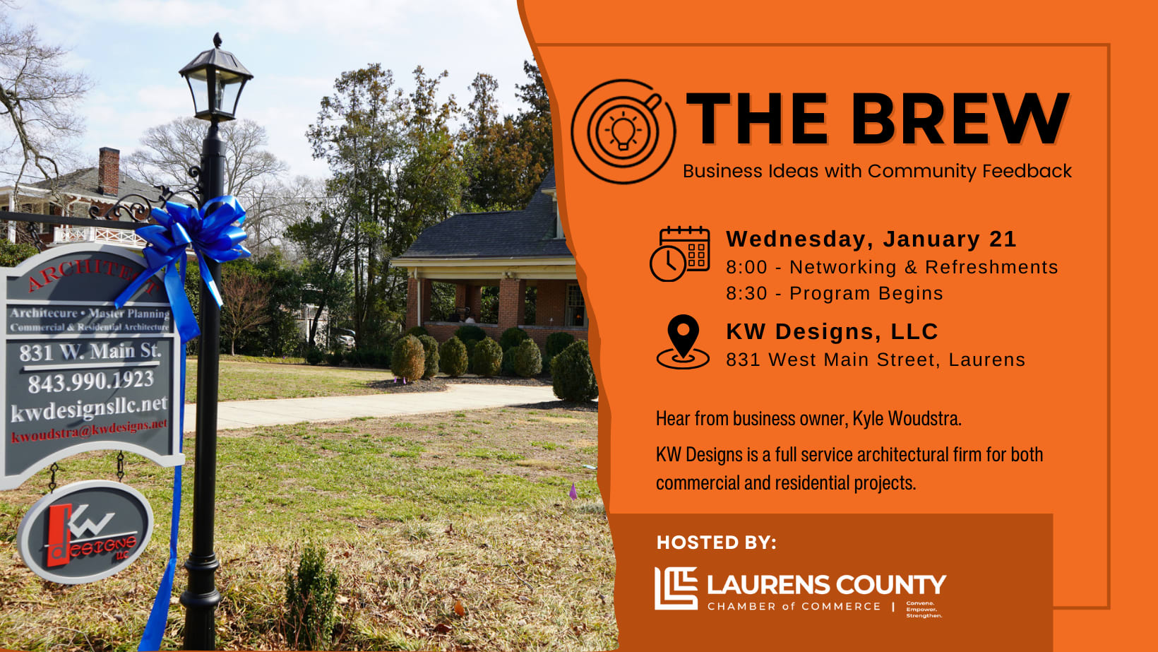 Calling all entrepreneurs.. join us on January 21, 2026, to hear from KW Designs business owner, Kyle Woudstra. KW Designs is a full-service architectural firm for both commercial and residential projects.