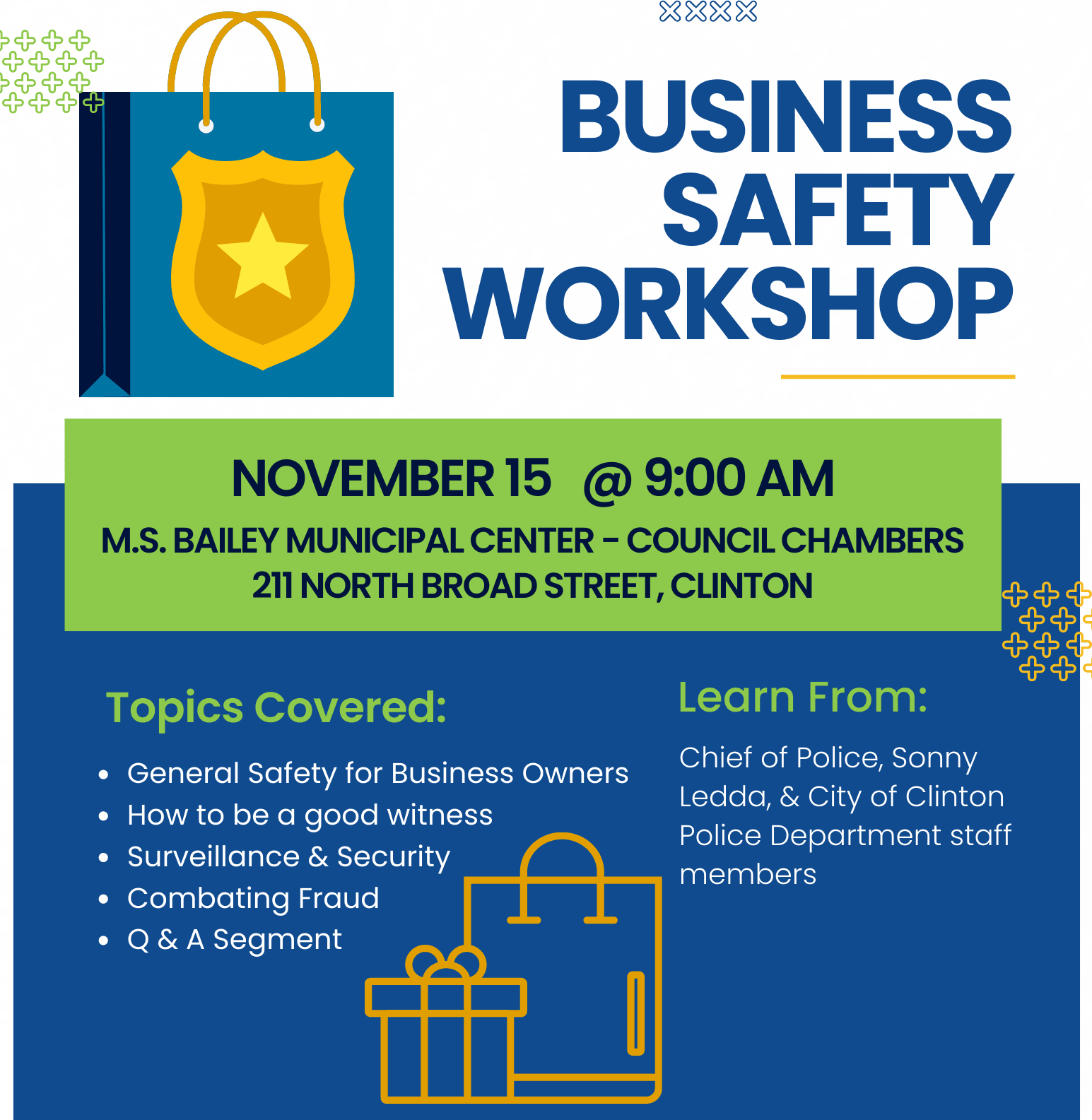 Business owners - get ready for the holiday season with us! We have partnered with the Clinton Police Department to host a "must-attend" business safety workshop.