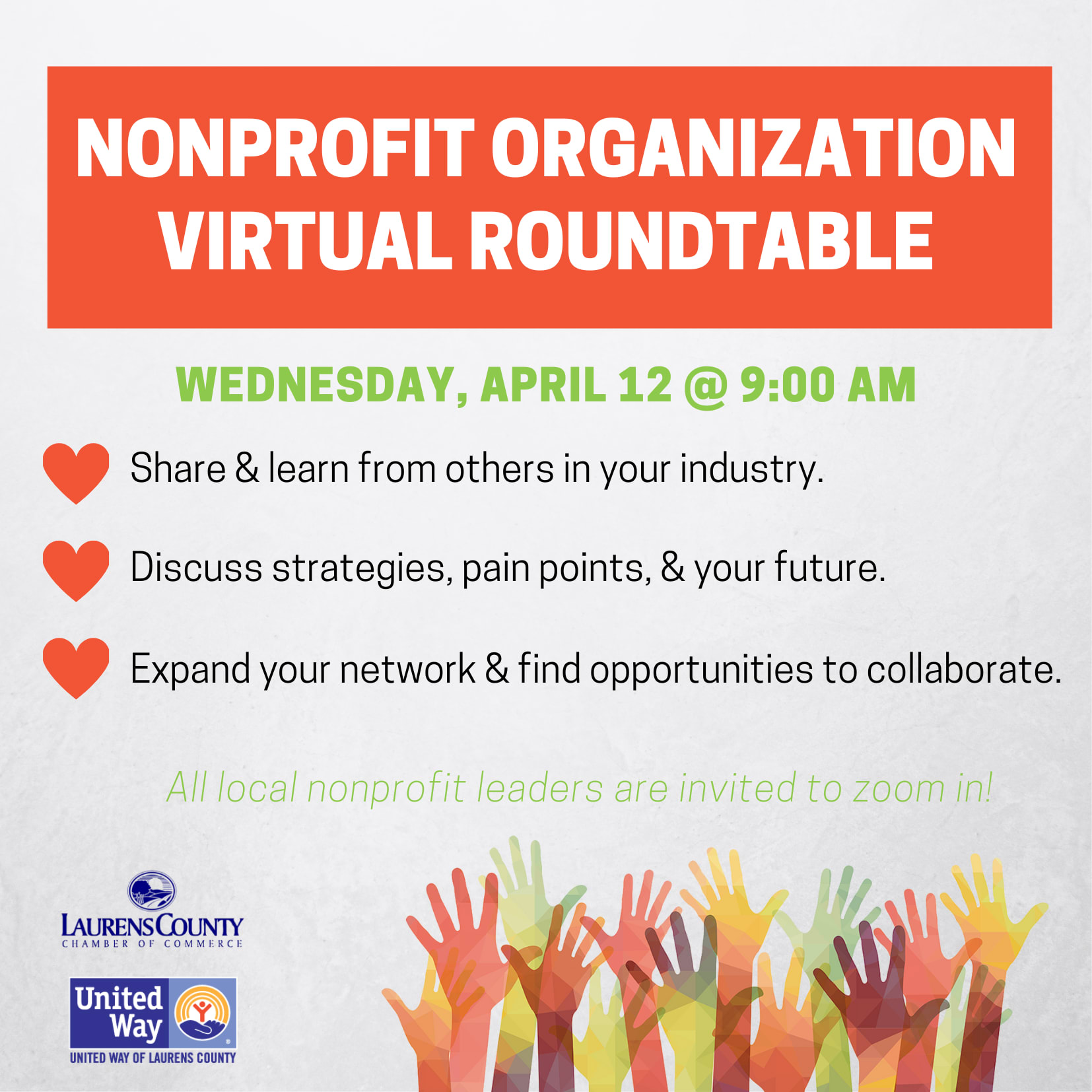 Zoom in with us for our next nonprofit-focused discussion as we open the lines of communication, make connections, and work on ways to collaborate. This event is free & open to all community members. Click here to register: https://us02web.zoom.us/meeting/register/tZIpc-mhqT8qGNM_AYlSru2GG4D3OezVaM64