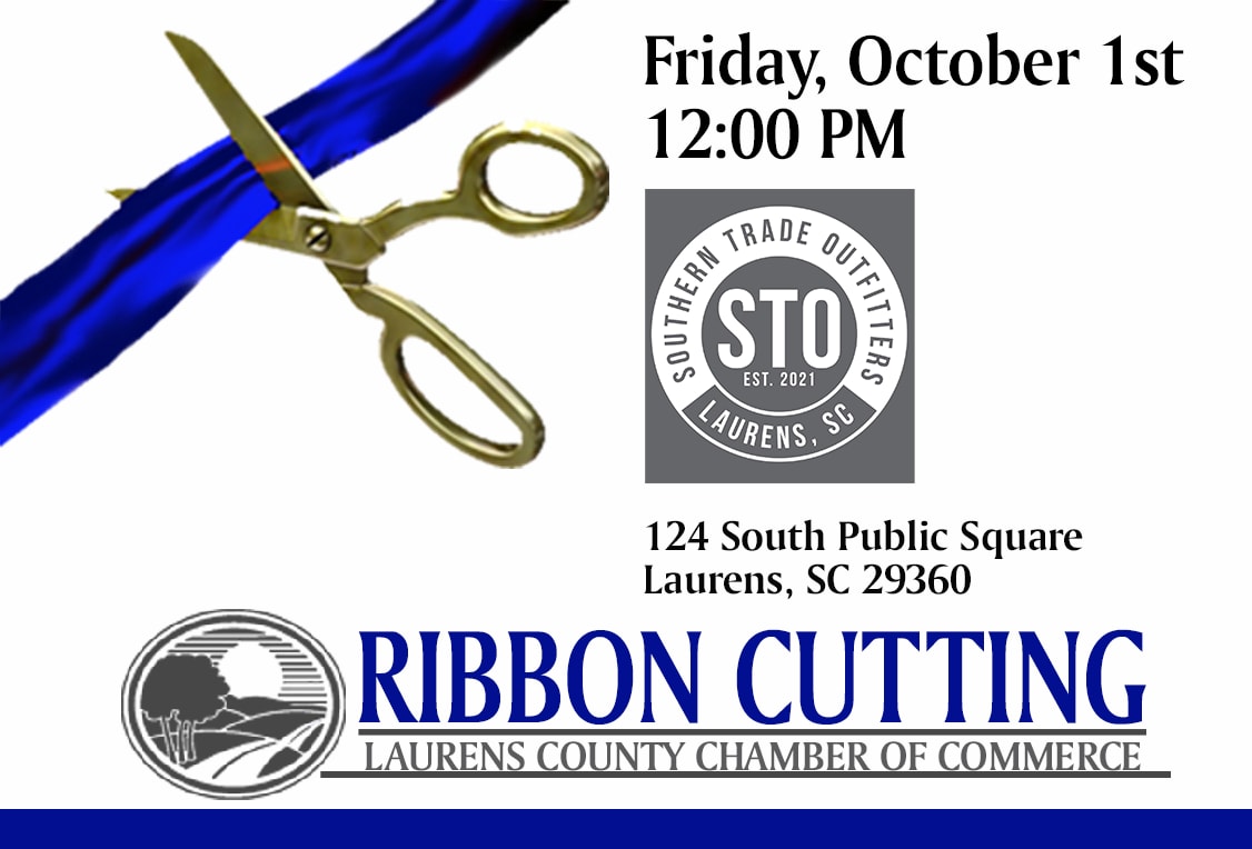 Join us as we celebrate the Grand Opening of Southern Trade Outfitters at their Ribbon Cutting Celebration on October 1st at noon!