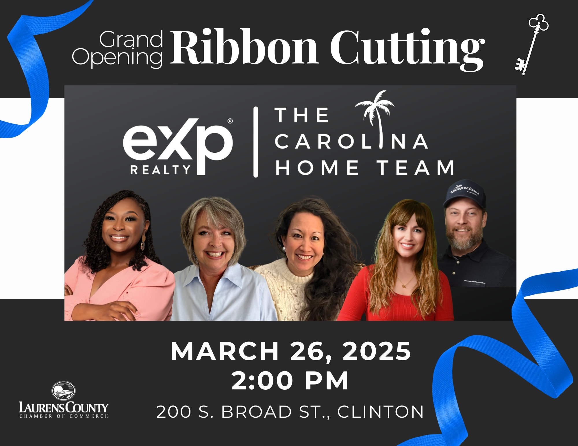 Join us as we celebrate the grand opening and ribbon cutting for The Carolina Home Team at EXP Realty! 🎉 📍 Location: 200 S Broad St, Clinton ⏰ Time: 2:00 PM Come meet the team: Danny & Ashley Smith, Carolyn Harris, Missy Codington, and Holly Cody. We look forward to seeing you there!